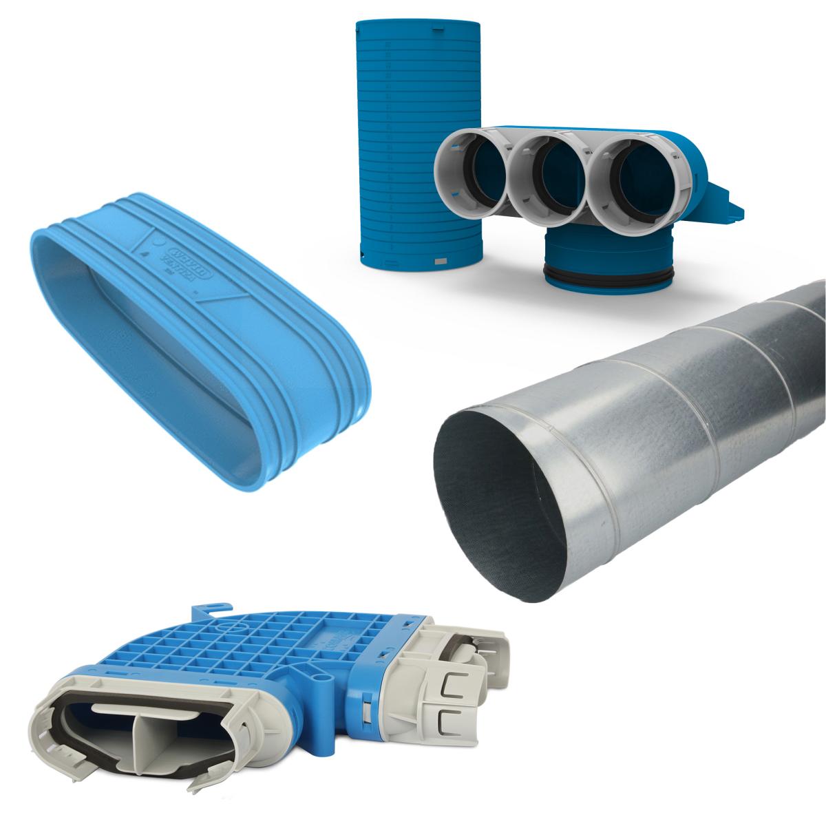 Ventiza kanaal ovaal Ventiza kanaal rond Ventiza lijmmof ovaal Ventiza lijmmof rond Ventiza bocht ovaal Ventiza rechtverloop ovaal Ventiza rechtverloop rond/ovaal Ventiza lepehoek ovaal/rond Ventiza lepehoek rond/rond Ventiza verloop T-stuk rond/ovaal Ventiza T-stuk ovaal Ventiza T-stuk rond Ventiza verloop T-stuk ovaal/rond Ventiza eindkap hulpstuk ovaal Ventiza eindkap kanaal ovaal Ventiza / AS+ beugel